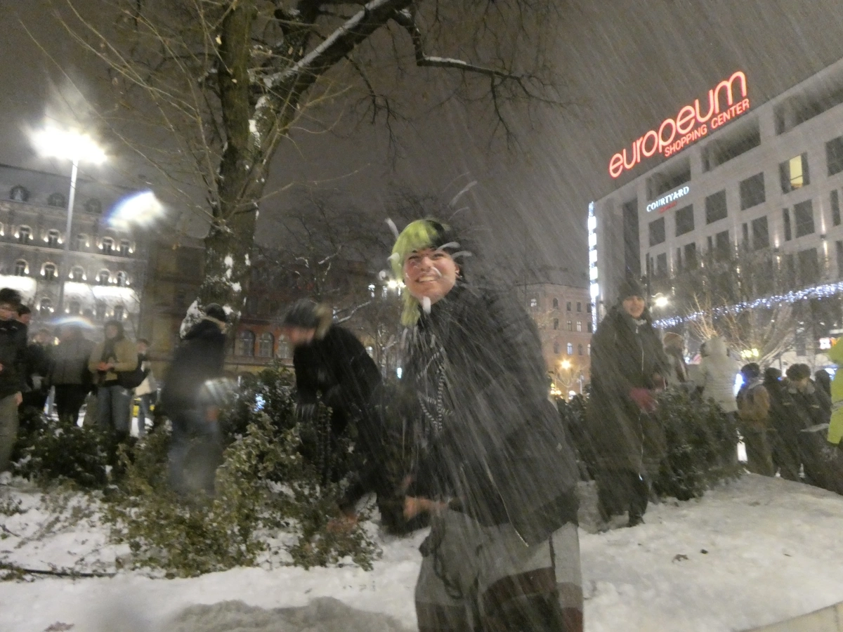 Óriási közösségi hócsata indult péntek este a Balaha Lujza téren, amibe mi is belecsöppentünk. Mindenki lelkesen gyúrta, dobta, hajította a hógombócokat, és akkora fergeteges buli hangulat kerekedett seperc alatt a főváros szívcsakrájában, hogy hó havon nem maradt.