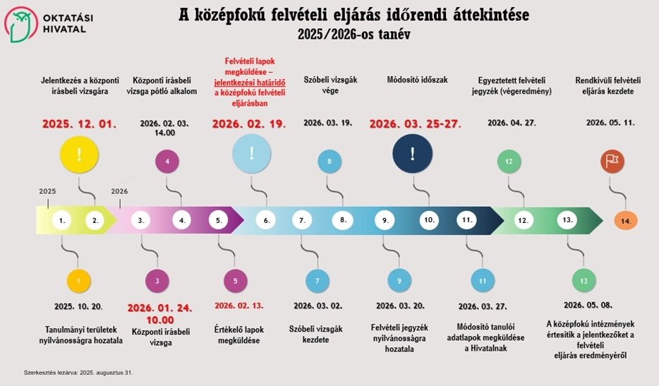 További fontos időpontok, kép forrása: Oktatási Hivatal