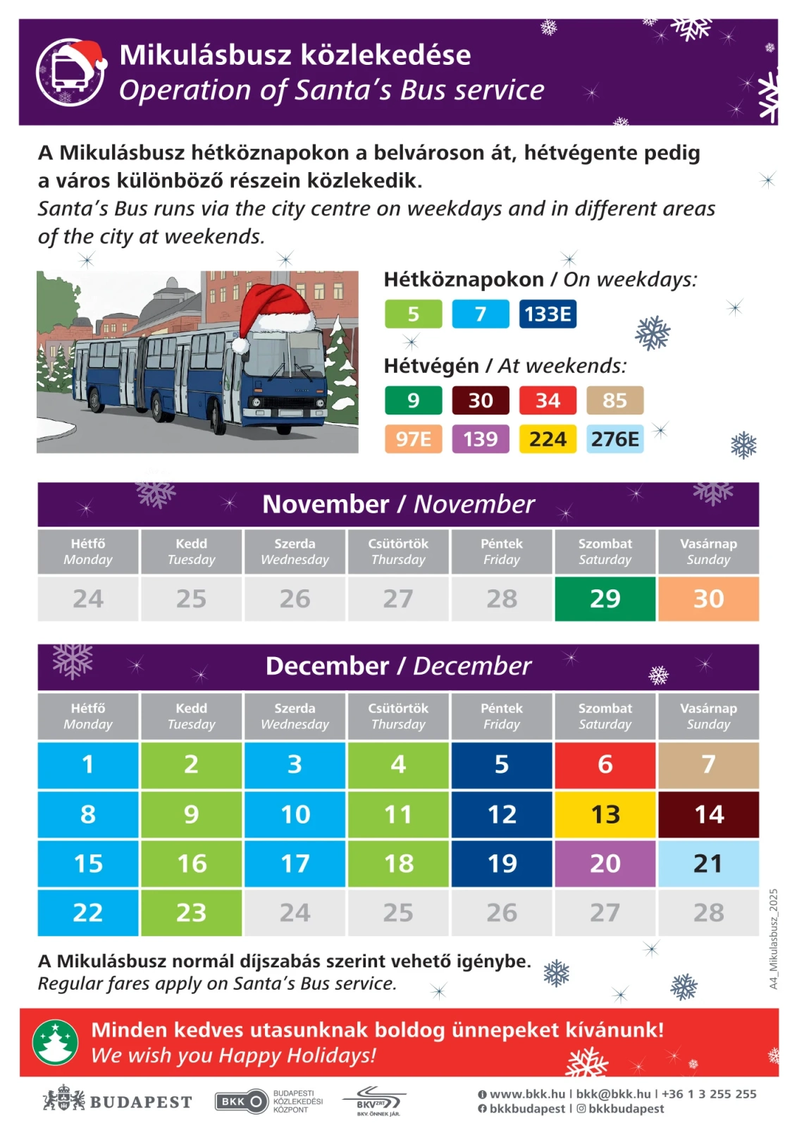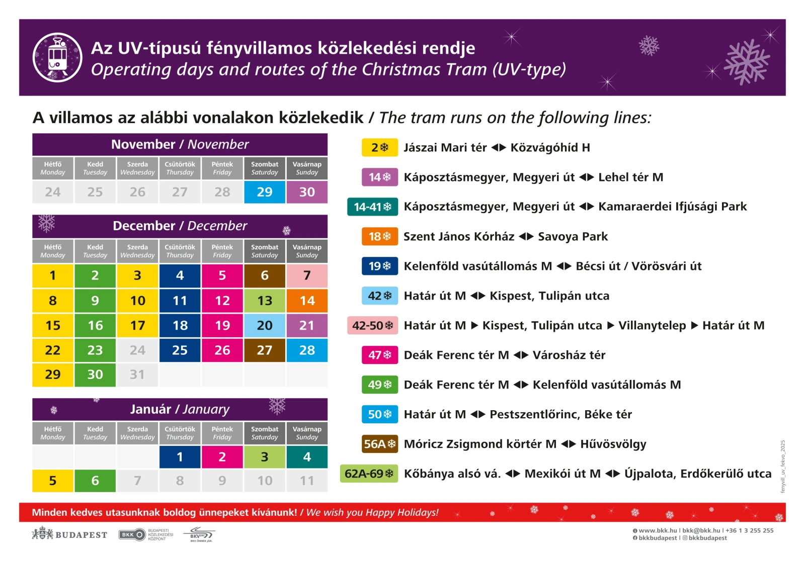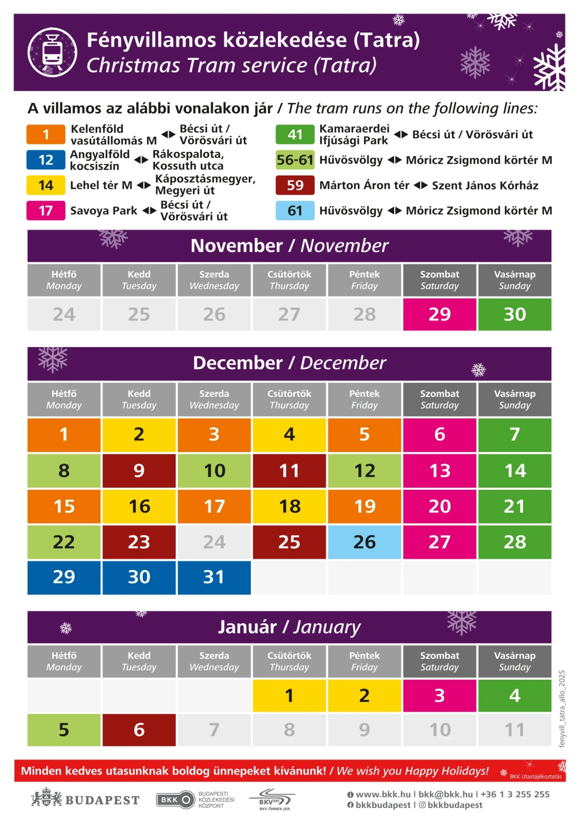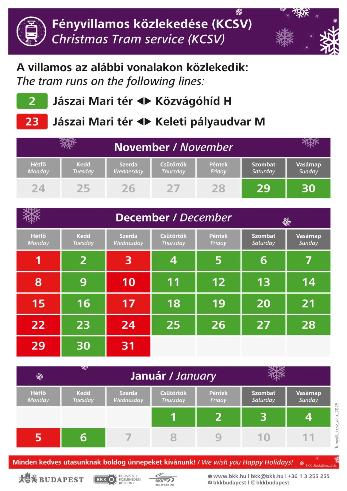 2026. január 6.-ig, mindennap délután 4 órától késő estig közlekedik.