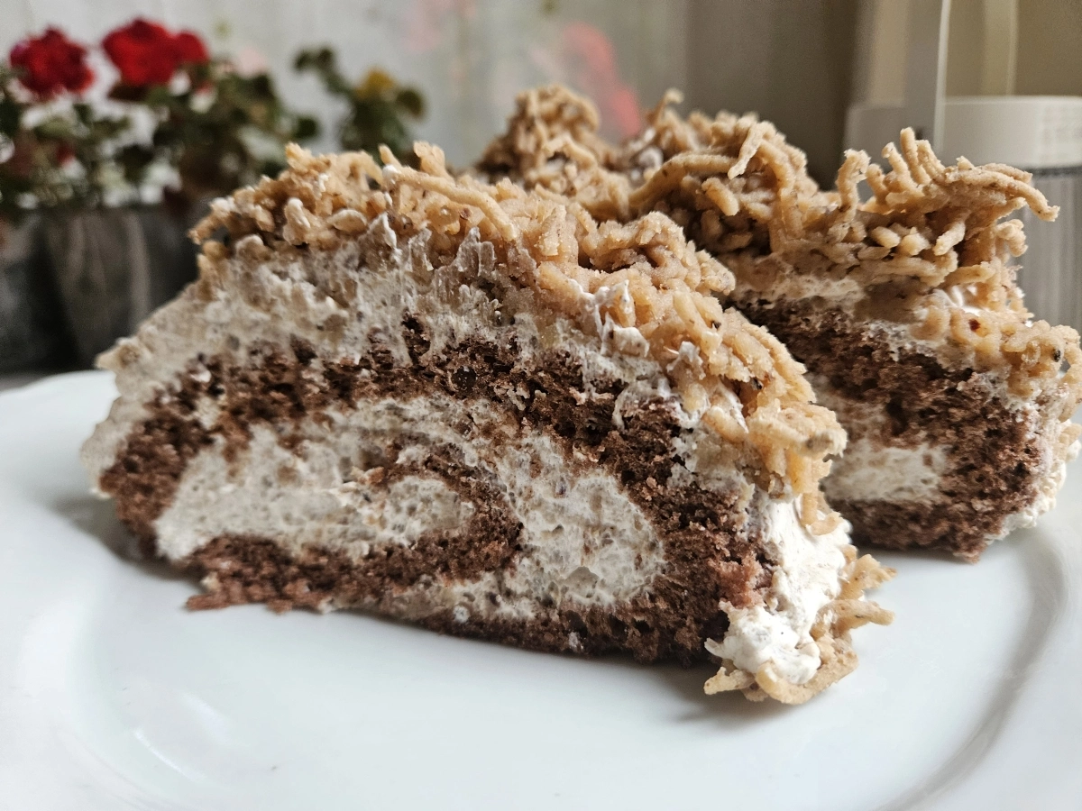 Az alábbi habos-gesztenyés sütemény ízében a klasszikus gesztenyepürék világát idézi, ám a puha, könnyű piskóta kellemesen ellensúlyozza a gesztenyekrém megszokott teltségét, így az egész desszert sokkal harmonikusabb és lágyabb ízélményt nyújt.