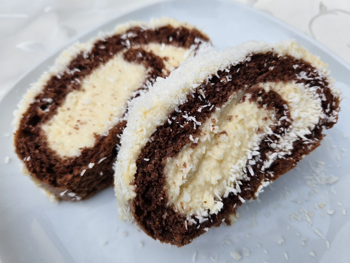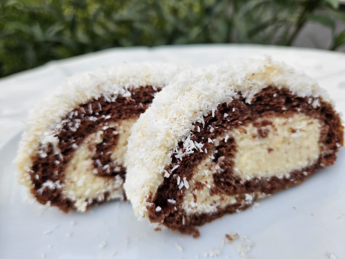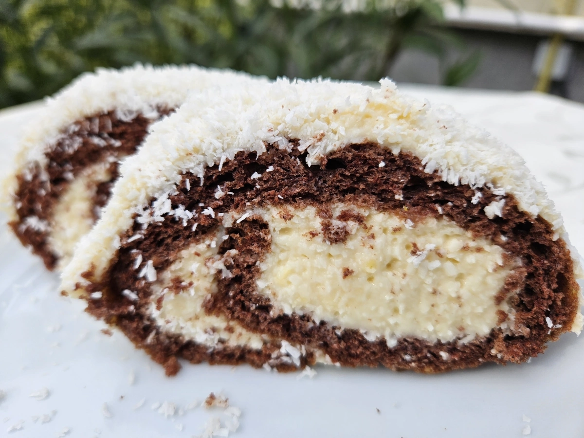 Az alábbi kókuszos tekercs nem csupán egy a hétköznapi sütemények közül, hanem látványában és ízében egyfajta lelki fetöltődés is. A fehér kókuszreszelék enyhén roppanós hóesésként vonja körül a pihepuha kakaós piskótát, a látvány már önmagában is sokat ígér. A kakaó és kókusz intenzív illata pedig fantasztikus. Nem lehet megállni, hogy azonnal meg ne kóstoljuk.