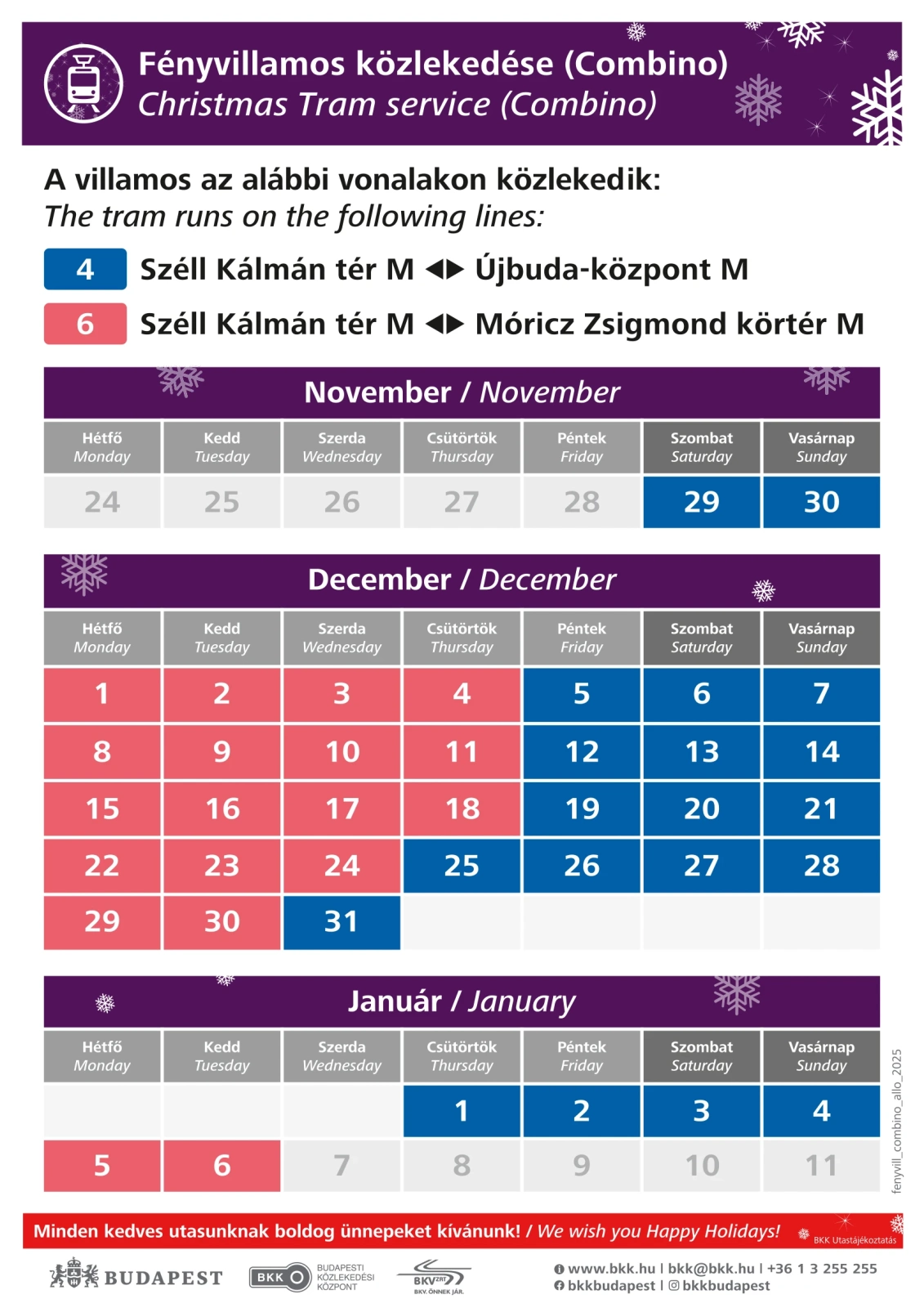 2026. január 6-ig mindennap délután 4 órától késő estig közlekedik.