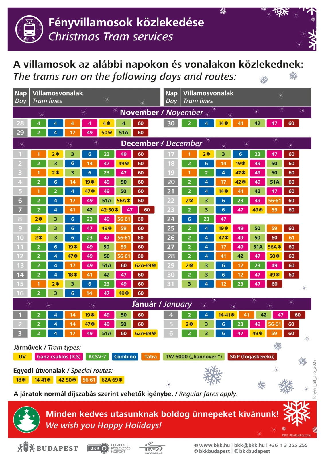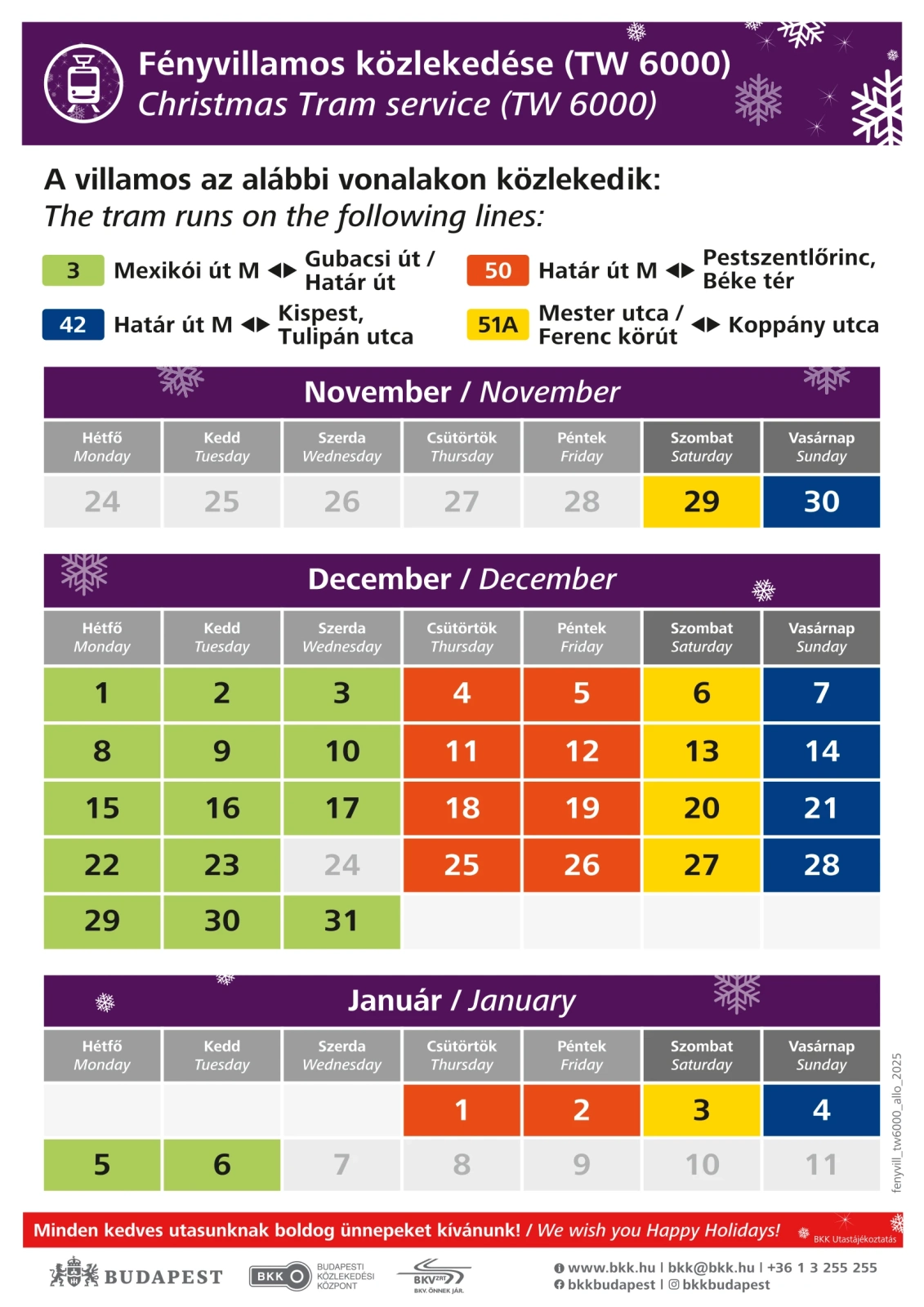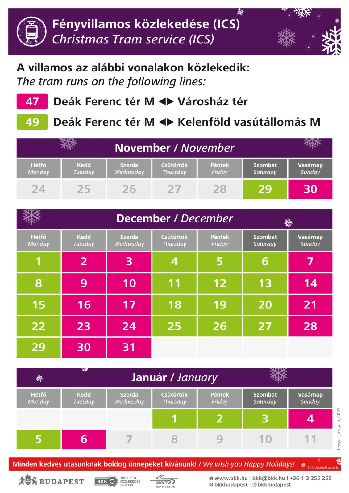 2026. január 6.-ig, mindennap délután 4 órától késő estig közlekedik.
