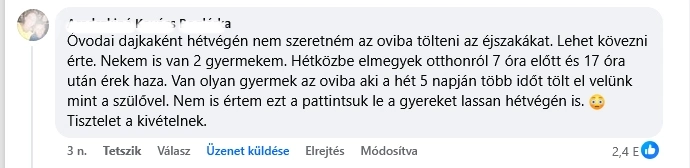 Ezek után feltettük a kérdést az olvasóinknak, hogy ki mit szól az éjszakai óvoda ötletéhez. A véleménycunamiből szemezgettünk, amelyek jól tükrözik, mennyire megosztó a téma.
